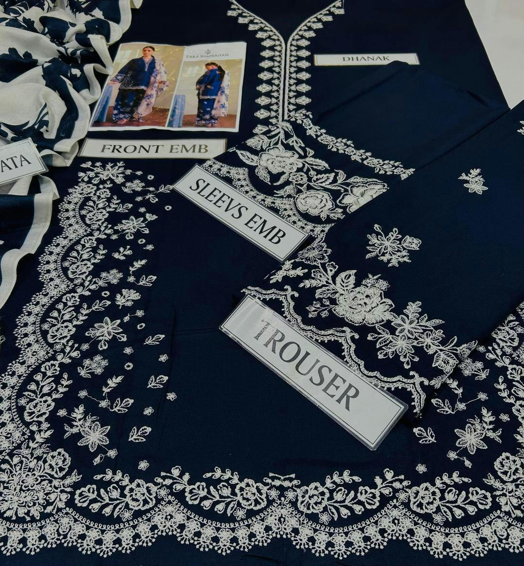 Make a graceful statement this season with our 3 Pcs Women’s Unstitched Embroidered Suit crafted from premium Dhanak fabric. The beautifully embroidered shirt and trouser paired with a soft wool shawl featuring a stunning digital print add elegance and charm to your wardrobe. Perfect for winter gatherings, festive occasions, or daily wear — this suit combines warmth, comfort, and timeless style.